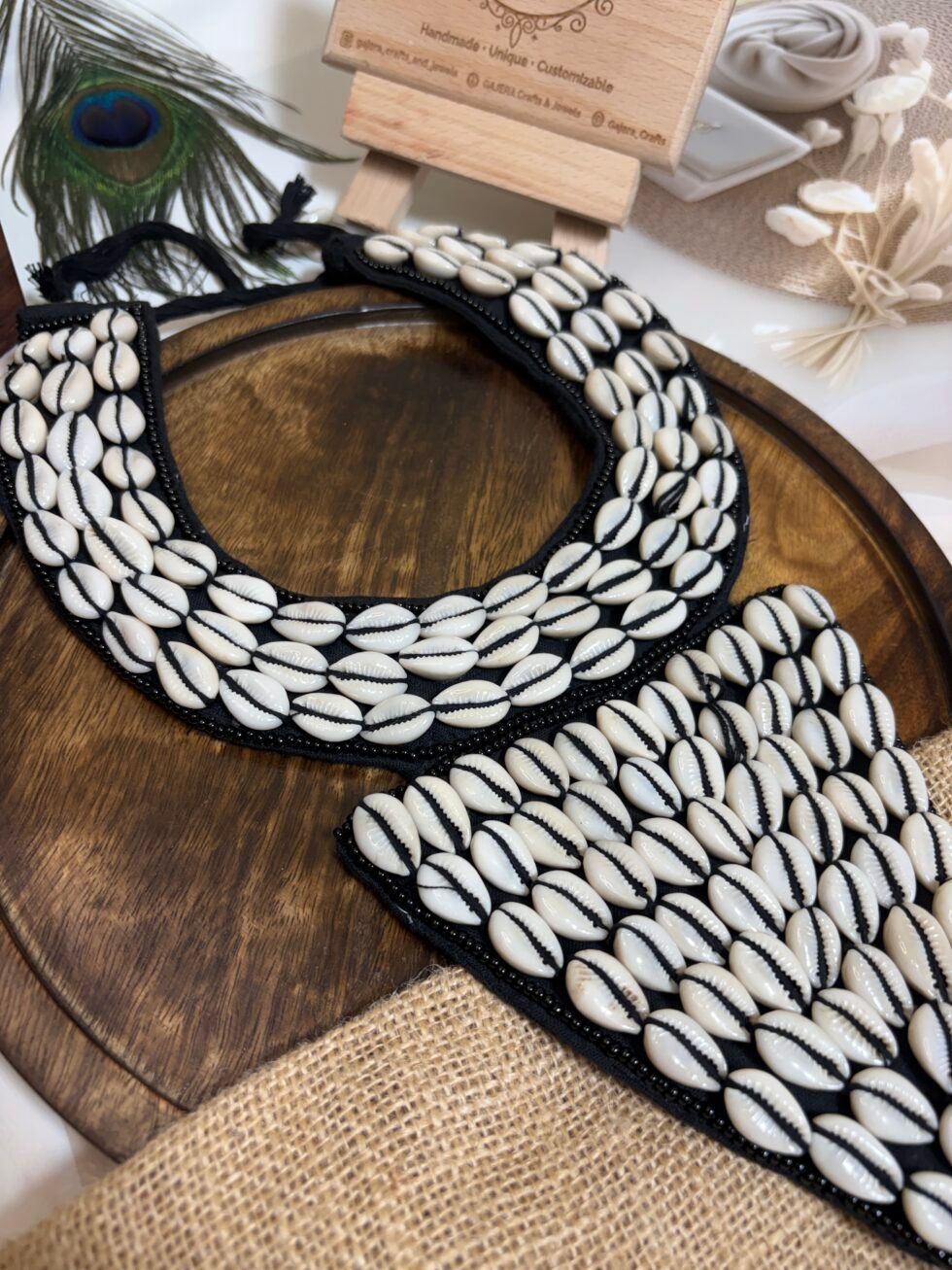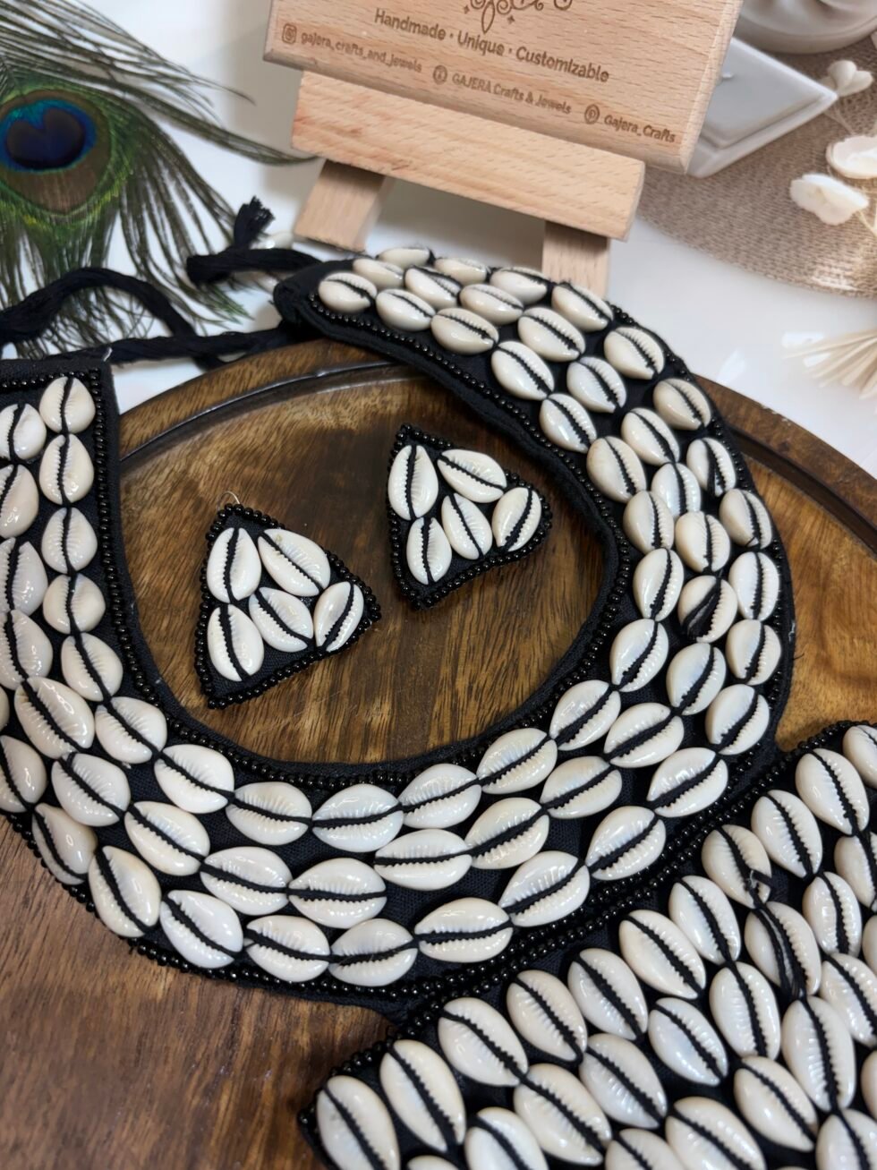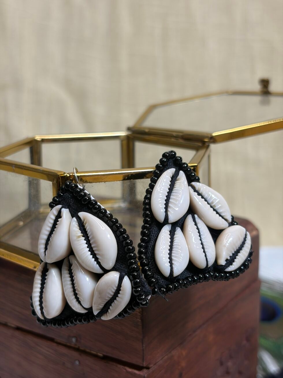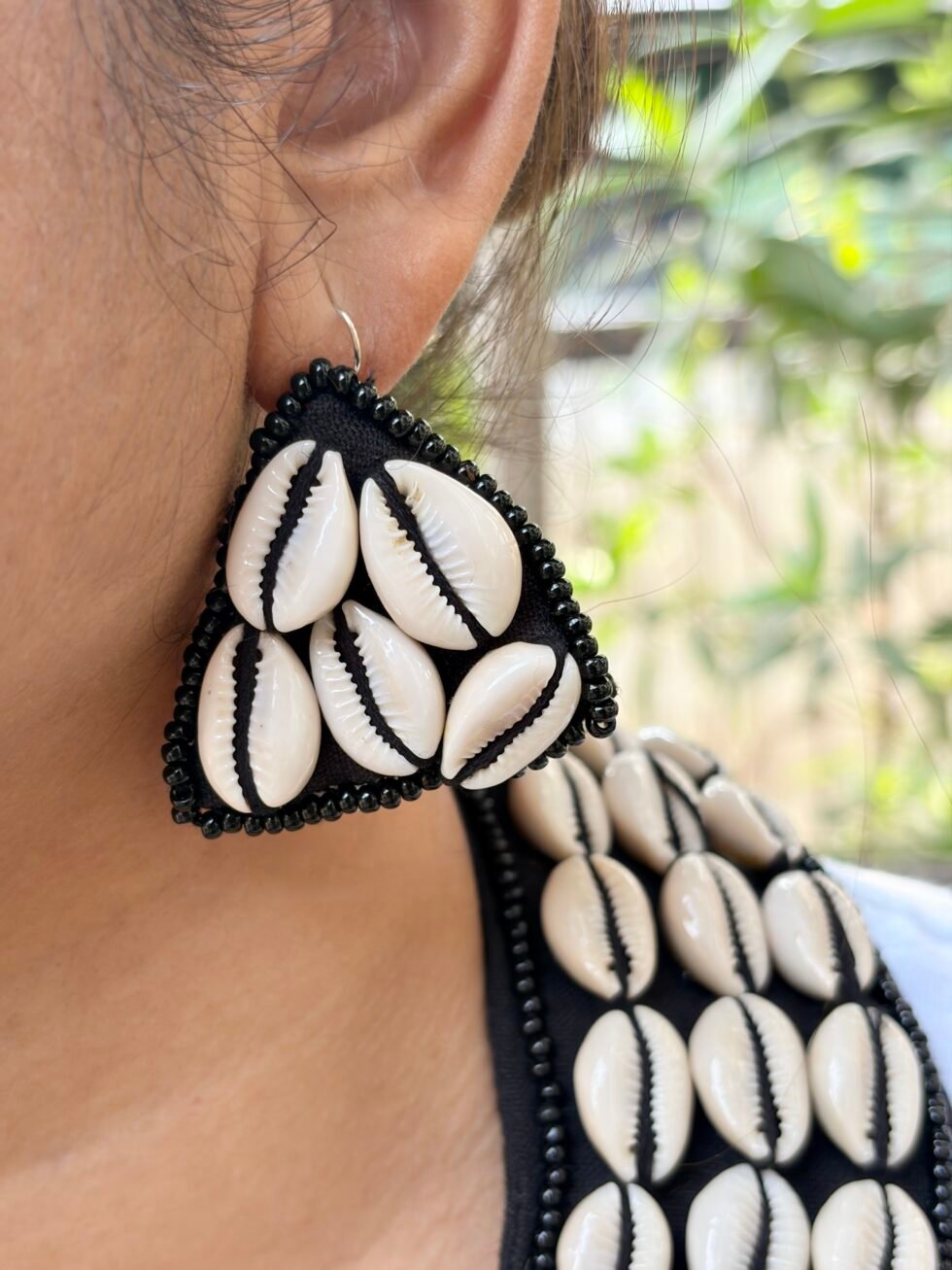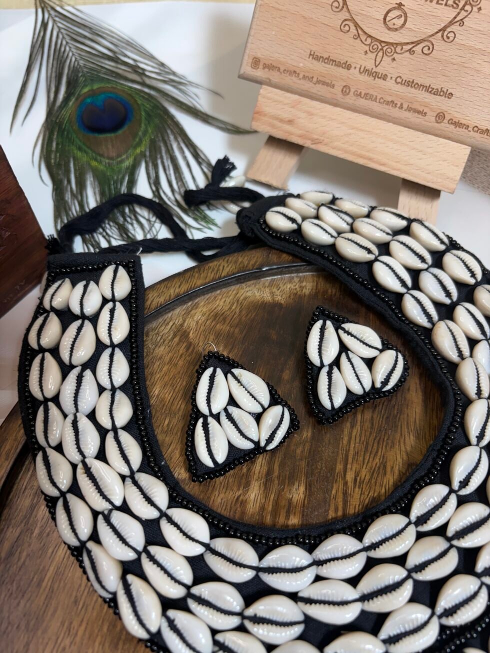 This set is perfect for Navratri nights, mehendi celebrations, haldi functions, festive gatherings, beach vacations, resort styling, cultural events, and creative Indo-western looks. It pairs beautifully with sarees, lehengas, kurtis, black dresses, co-ord sets, kaftans, and fusion outfits where one bold accessory set can become the highlight of the entire look. The cowrie shell detailing brings a playful boho energy, while the black base keeps the design classy and easy to style again and again. Handmade with care, this set feels memorable, fashionable, and premium in a way that supports long-term brand trust.