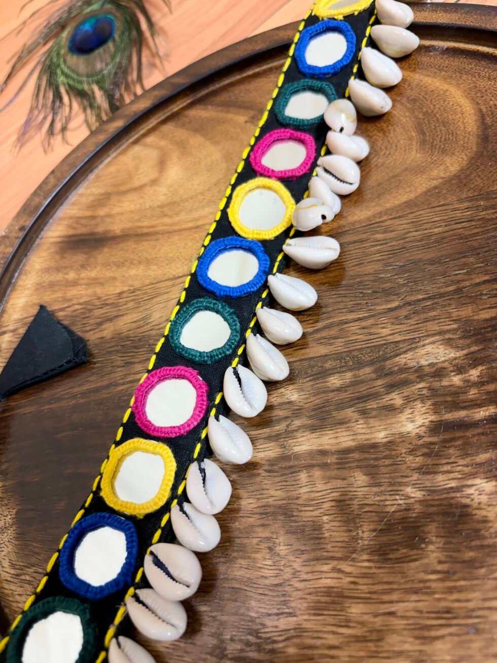This kamarbandh is perfect for Navratri nights, garba looks, mehendi functions, haldi celebrations, festive gatherings, cultural events, dance performances, and creative Indo-western styling. It pairs beautifully with lehenga, chaniya choli, saree, blouse, skirt, kurti, and fusion outfits, especially when you want your waist styling to become a highlight of the full look. The cowrie shell fringe adds movement and a soft boho touch, while the mirror details bring sparkle without making the design feel too heavy. Handmade with care, this piece feels vibrant, artistic, and special in a way that supports long-term brand value and trust.